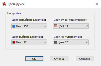 НАСТРОЙКА (команда) найти: вкладка «Выбор» > «Цвета ручек»