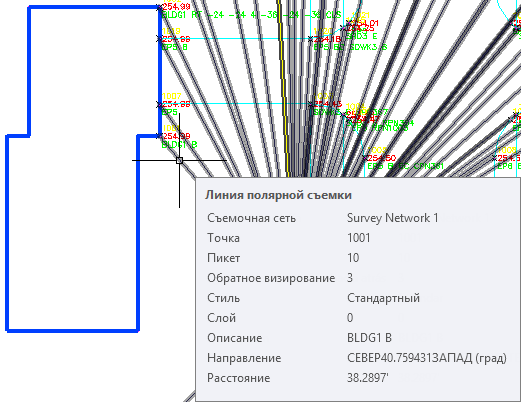 «Съемочная сеть 1», чтобы отобразить коллекции данных съемки, включая опорные точки, направления и точки стояния.