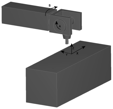 Поворотная бабка B и A — Вращает вокруг Y, используя стол, а затем вокруг X в бабке.