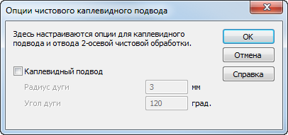 Откройте диалоговое окно Опции чистового каплевидного подвода, нажав кнопку Каплевидный на вкладке Подвод/врезание диалогового окна Атрибуты фрезерной обработки или на вкладке Стратегия диалогового окна «Свойства элемента».