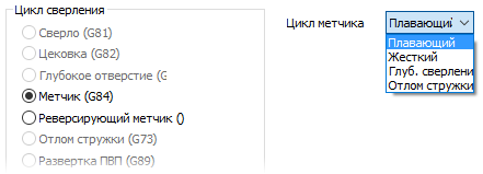 Метчик (G84) — Выберите тип метчика, используя опцию Цикл метчика. Вы можете выбрать опции Плавающий, Жесткий, Глубокое сверление или Отлом стружки. Все циклы используют один и тот же формат программы Метчик, но в XBUILD существуют служебные слова, чтобы различить необходимый тип метчика.