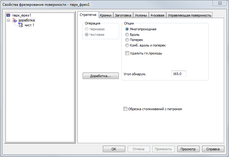 - Комбинировать вдоль и поперек — Создаются траектории Поперек на отвесных участках и траектории Вдоль - на пологих.