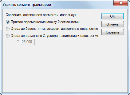 Чтобы открыть диалоговое окно Удалить сегмент траектории, нажмите Удалить сегмент