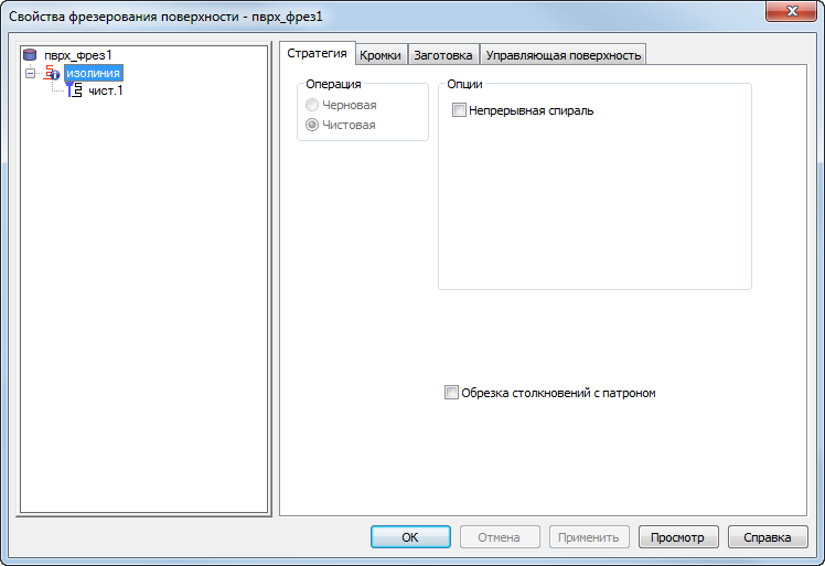 Непрерывная спираль — данный параметр позволяет остановить подъем инструмента от поверхности при обработке.