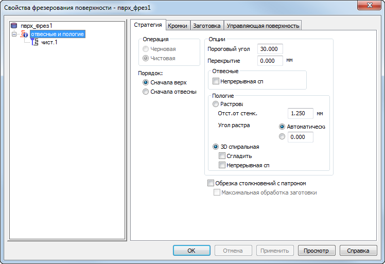 Порядок — Определяет порядок, в котором обрабатываются отвесные и пологие участки.
