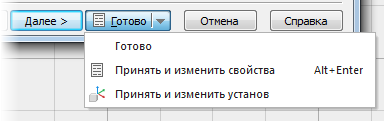Кнопка Готово закрывает Мастер заготовки и создает заданную вами заготовку. Нажмите на стрелку, чтобы задать, как работает кнопка.
