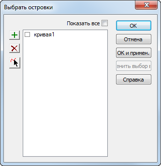 Чтобы открыть диалоговое окно Выбрать островки, нажмите Островки на вкладке Размеры диалогового окна Свойства фрезерного элемента.