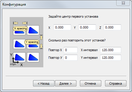 Если вы вводили значения в полях Повтор Х или Повтор Y, отображается вкладка Расположение, где можно задать расположение повторяющихся установов.