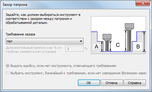- В списке Требование зазора выберите зазор, который необходим между патроном и деталью. Выберите из:
