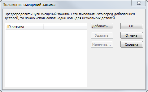 Можно использовать диалог Положения смещений зажима, чтобы создавать, редактировать и удалять зажимы в проекте многоместного приспособления.