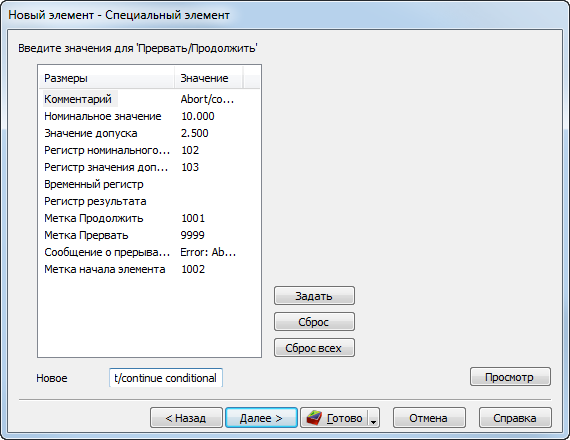 Метка Продолжить — Введите место в коде, в которое нужно перейти, если программа должна быть продолжена после этого элемента тестирования. Можно создать метку перехода, используя элемент Метка перехода.