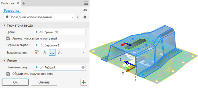 Развертка граней детали