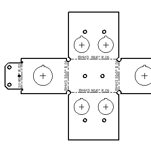 Примечания для сгибов добавляют информацию для производства на сгибы листового металла, ролики и косметические осевые линии. Обозначения для сгибов могут быть добавлены на виды развертки деталей листового металла.
