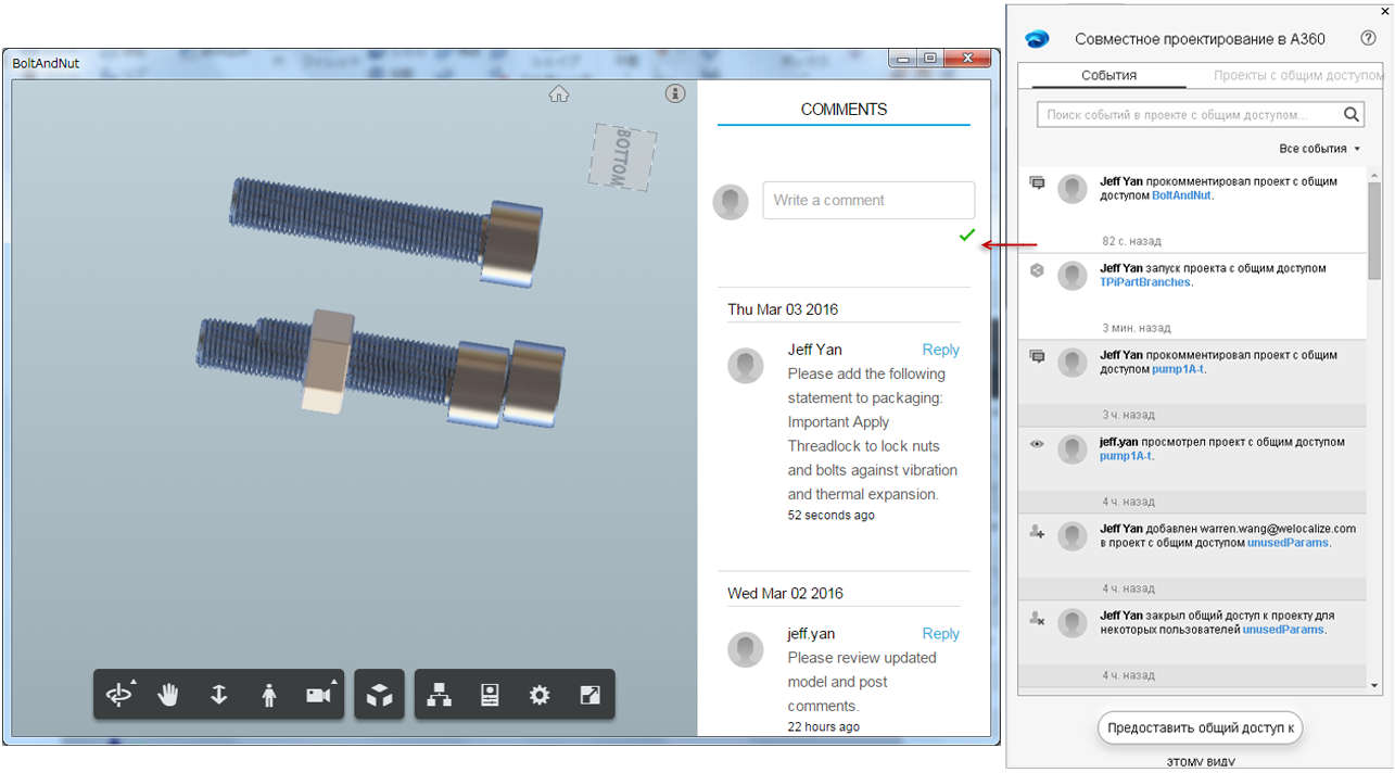 Комментарии по общедоступным проектам теперь отображаются в Inventor