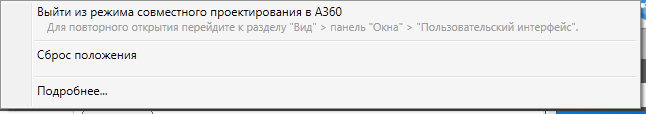- Теперь можно переместить кнопку доступа к совместному проектированию в наиболее подходящее для пользователя место графического окна. Кроме того, есть возможность передвинуть ее в исходное положение с помощью нового контекстного меню.