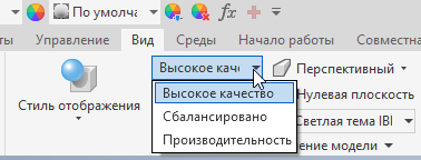 - Высокое качество — обеспечение высококачественного визуального отображения за счет использования нового стиля освещения IBL Светлая тема IBL, реалистичного визуального стиля и теней. Лучше всего подходит для демонстрации результатов работы в высоком визуальном качестве или визуализаций с трассировкой лучей в финальном качестве.