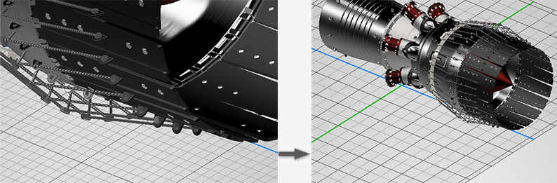 - Нулевая плоскость — обновленное представление сочетается с новой цветовой схемой. Добавлена возможность динамически уменьшать количество линий сетки при уменьшении масштаба изображения. При увеличении масштаба количество плавно восстанавливается. Основные оси окрашиваются в соответствии с осями координат, которые можно видеть в триаде модели в нижнем левом углу графического окна.