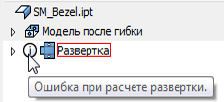 Для развертки, при расчете которой допущены ошибки, отображается значок информации в обозревателе, и она обрабатывается корректором ошибок.