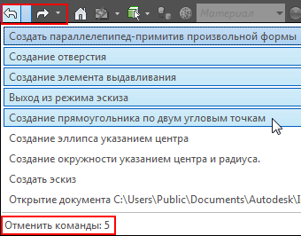 В обозревателе или графическом окне файла детали доступны следующие команды.