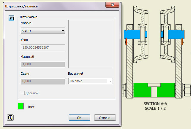 Кроме того, в диалоговом окне «Штриховка/заливка» можно вручную переопределить образец штриховки или цвет по умолчанию.