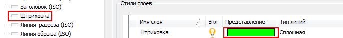 Цвет сплошной заливки по умолчанию черный. Цвет по умолчанию можно изменить на желаемый, выбрав «Представление (цвет) штриховки»
