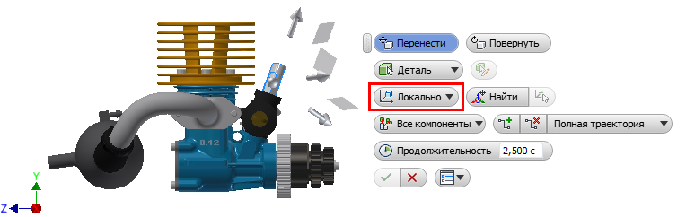 Направление сдвига теперь можно задать на мини-панели инструментов, выбрав локальную систему координат компонента или мировую систему координат схемы. При выборе нескольких объектов локальная система координат определяется для первого выбранного объекта.