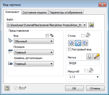 Для добавления проекционного вида в определенное место на листе перетащите ограничивающую рамку проекционного вида в требуемое место. Затем щелкните, чтобы создать вид.