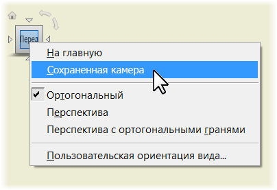 Для видов чертежей на основе презентационного вида модели можно выбрать и применить настройки камеры, сохраненные в файле схемы (он имеет расширение .ipn). Щелкните видовой куб правой кнопкой мыши и выберите "Сохраненная камера".
