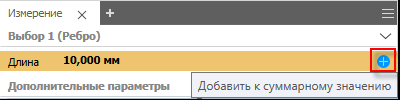 Для каждого типа значения, которое необходимо суммировать, сначала выберите элементы в графическом окне, а затем нажмите значок плюса. Каждое измерение добавлено в группу суммарных свойств, связанную с типом измерения выбранных элементов.