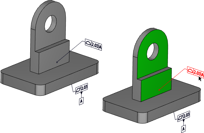 Экспортированные файлы 3D PDF теперь поддерживают выделение связанной грани для аннотаций допусков, которые ссылаются на несколько граней.