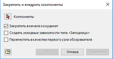 «Закрепить и внедрить компонент» позволяла закрепить, переместить и использовать зависимости типа «Заподлицо» для внедрения выбранного компонента в начало сборки. Затем выполнялось перемещение компонента в верхнюю часть обозревателя.