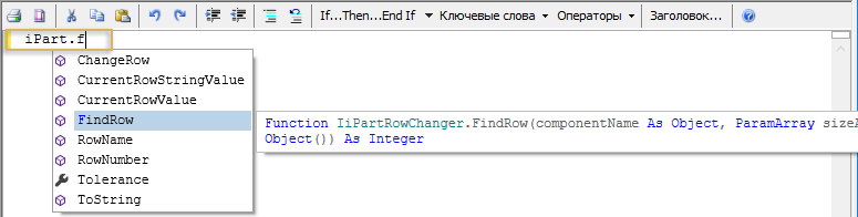 Например, введите «.» после переменной и начните ввод или в любой момент нажмите CONTROL + ПРОБЕЛ либо ALT + СТРЕЛКА ВПРАВО. При этом отобразится список доступных вариантов в алфавитном порядке. Полное описание переменной отображается в подсказке.