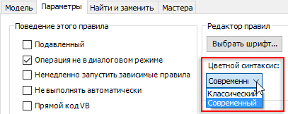 | Вкладка параметров редактора правил | Пример нового выделения синтаксиса цветом |