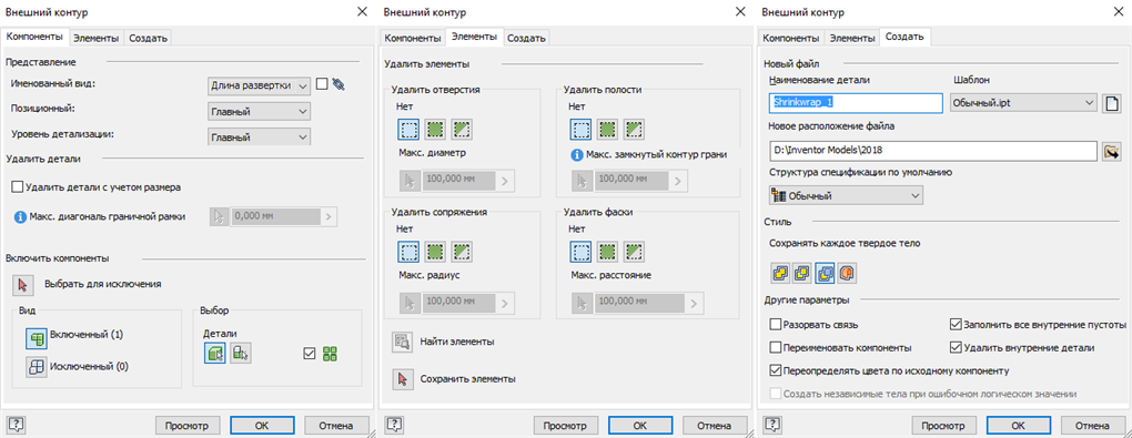 - Вкладка Элементы — содержит варианты для определения того, какие элементы следует удалить из детали внешнего контура. Определенные типы элементов можно сохранить, удалить их все или удалить некоторые, используя диапазон значений. Кроме того, существуют инструменты, которые помогают обнаружить и сохранить элементы.