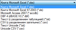 Новый список допустимых форматов для экспорта глобальной спецификации, списков деталей и таблиц редакций теперь доступен в раскрывающемся меню.