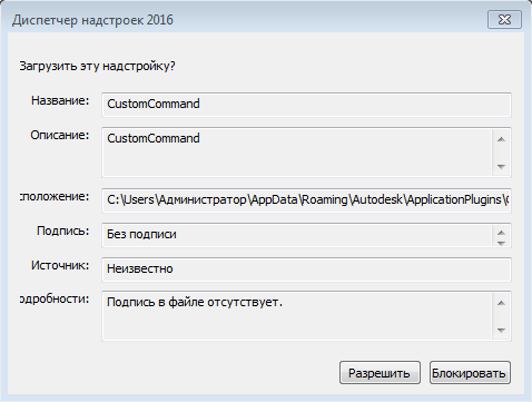 При загрузке надстройки стороннего продукта отображается новое диалоговое окно. Теперь можно выбирать, следует ли разрешить или блокировать загрузку надстройки. Эта настройка будут сохранена для последующих сеансов. Настройки "Разрешить/блокировать" можно просматривать и изменять с помощью Диспетчера надстроек.