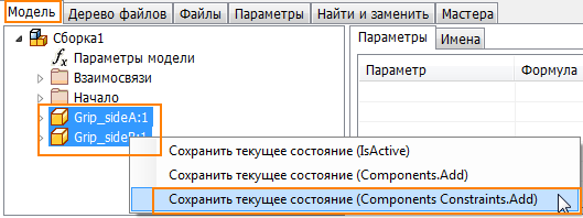 Шаг 2 В диалоговом окне «Редактировать правило» файла сборки на вкладке «Модель» выберите несколько деталей, щелкните правой кнопкой мыши, а затем из контекстного меню выберите Capture.Current.State (Components Constraints.Add). |