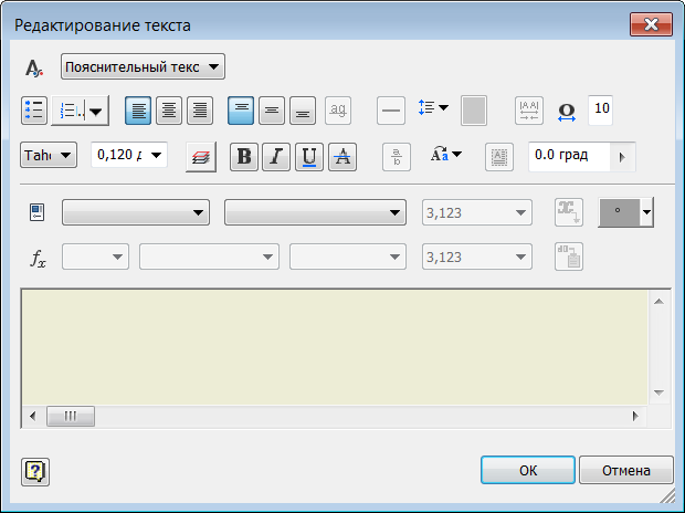 Диалоговое окно "Формат текста" упрощено и оптимизировано для большей наглядности и удобства в использовании. Размер окна уменьшен для обеспечения большего пространства для редактирования в графическом окне.