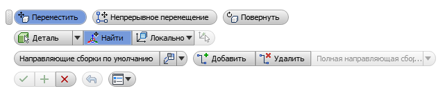Если направляющие сборки по умолчанию не соответствуют вашим требованиям, можно добавить направляющие сборки или их сегменты вручную. На мини-панели инструментов "Сдвиг компонента" выберите