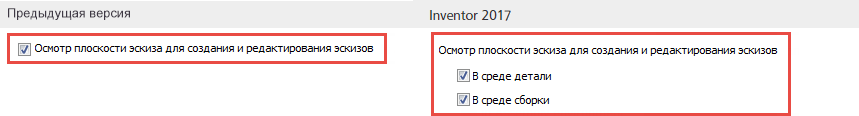 Благодаря этому теперь можно, например, отключить функцию «Осмотр» для плоскости эскиза при редактировании отдельного компонента и при этом пользоваться этой функцией при редактировании эскиза сборки.