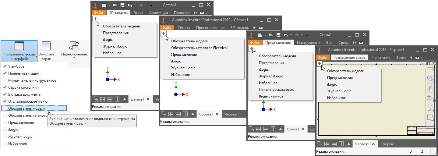Для всех типов документов добавлены точки доступа к обозревателю модели. Если обозреватель закрыт, в левом верхнем углу графического окна отображается значок