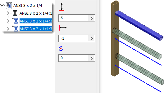 Теперь можно выбирать повторно используемые элементы любой группы и изменять значения расстояния и угла поворота. Изменение размера или семейства применяется ко всем элементам группы.