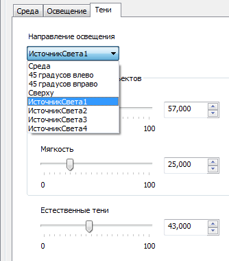 Параметры теней настраиваются отдельно для каждого стиля освещения. Эти параметры доступны на вкладке "Тени" в пользовательском интерфейсе редактора стилей. Новый параметр "Среда" позволяет использовать изображение среды для определения направления теней.