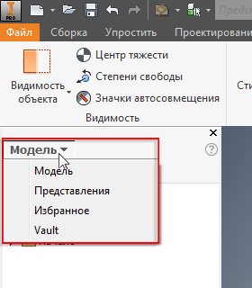 команда "Адаптация". Это усовершенствование позволяет переходить между панелями в обозревателе моделей Inventor (например, "Избранное", "Представления" и Vault).