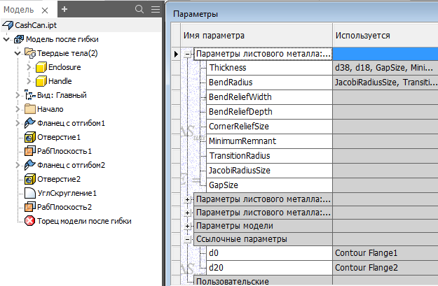 Совет: В детали, содержащей несколько тел, используйте столбец «Используется» и параметр фильтрации «По элементам» для определения зависимостей.