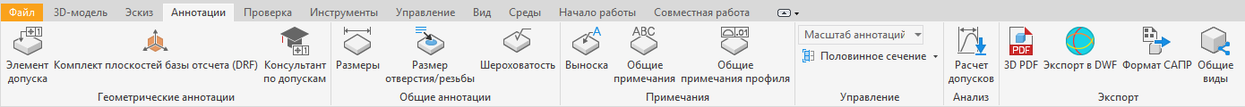 Для доступа к командам 3D-аннотаций используйте вкладку «Аннотации» в файле детали и добавьте производственную информацию непосредственно в 3D-модель.