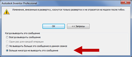 При внесении изменений в развертку можно закрыть предупреждающее сообщение.