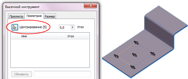 В диалоговое окно "Высечной инструмент" вкладки "Геометрия" добавлено несколько экземпляров инструмента высечки.