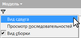 Значок "Фильтр" заменяется на имя текущего вида обозревателя.
