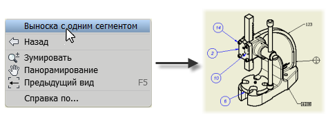 Выберите параметр "Один сегмент выноски", чтобы изменить процедуру по умолчанию и создать аннотации чертежа с помощью одного сегмента выноски. Параметр "Один сегмент выноски" доступен для номеров позиций, текста на выноске, обозначений шероховатости, обозначений сварки, допусков формы и расположения, обозначений участка базы и эскизных обозначений. Можно задать параметр отдельно для каждого типа аннотаций чертежа.